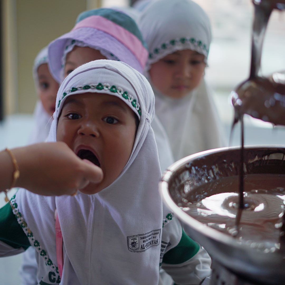 Pengalaman kreatif berlanjut di Cooking Class, di mana siswa menghias cokelat dengan warna-warna menarik. Aktivitas ini tidak hanya melatih kreativitas tetapi juga memperkenalkan istilah baru dalam bahasa Inggris terkait seni kuliner. Setelah selesai, siswa menikmati cokelat fountain yang menjadi momen favorit mereka.
