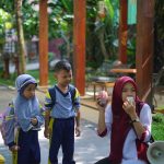 Perjalanan edukasi dimulai dengan eksplorasi di area Tani Modern, tempat anak-anak diperkenalkan pada tanaman kakao. Mereka belajar mengenali bentuk pohon dan daun kakao, serta melihat langsung bagaimana bibit kakao ditanam.