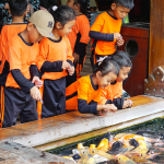 Kegiatan kemudian dilanjutkan ke Cooking Class untuk sesi icip cokelat fountain. Di sini, siswa mencicipi cokelat cair yang lezat sambil mendapatkan penjelasan tentang produk cokelat khas Kampung Coklat, memberikan pengalaman unik yang menggabungkan rasa dan edukasi.