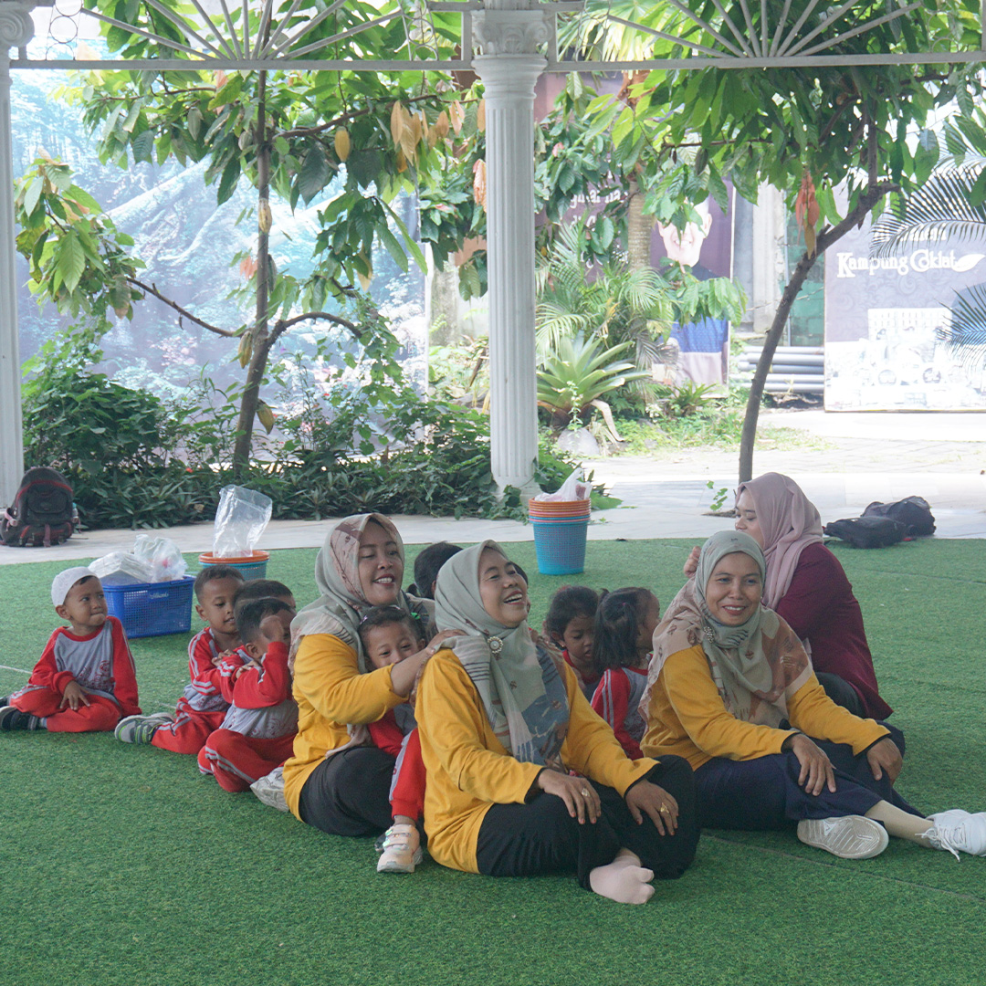 Anak-anak memulai kunjungan dengan berkeliling di zona edukatif Kampung Coklat, khususnya di area Tani Modern. Di sana mereka belajar mengenai proses menanam bibit kakao, mulai dari mengenal media tanam hingga praktik menyemai secara langsung. Aktivitas ini tidak hanya memperkaya wawasan, tetapi juga mengasah keterampilan motorik halus anak-anak.