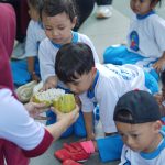 Kemudian, dalam sesi pecah buah kakao, siswa mendapatkan pengalaman istimewa. Mereka diajarkan cara memetik buah kakao yang baik dan benar dan cara memecah buah kakao untuk melihat isinya. Tidak hanya itu, siswa juga berkesempatan untuk mencicipi langsung buah kakao segar, sebuah pengalaman yang unik dan menyenangkan bagi mereka.