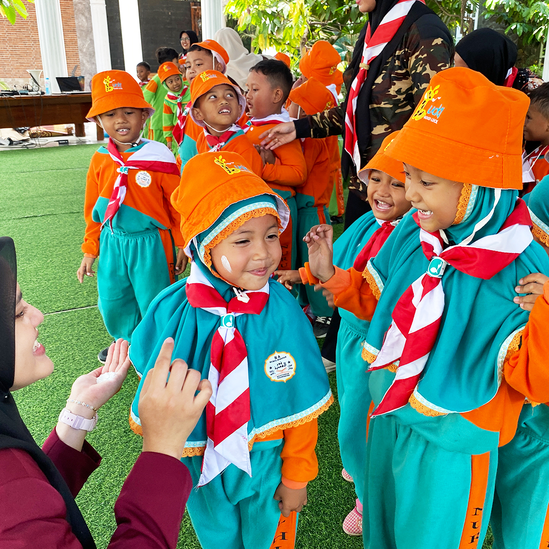 Setelah berkeliling, kegiatan berlanjut ke sesi fun games. Di sinilah keceriaan semakin terasa. Anak-anak tertawa riang saat bermain bersama, saling menyemangati, dan belajar bekerja sama dalam tim. Nilai sportivitas dan kebersamaan tumbuh alami di tengah suasana penuh tawa.