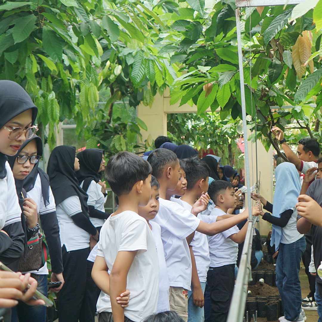 Sejak pagi, anak-anak bersama guru pendamping tiba di Kampung Coklat dengan wajah ceria. Setelah melakukan proses check-in di pintu masuk, mereka diarahkan ke area Tani Modern untuk pembagian kelompok. Suasana penuh semangat mulai terasa ketika setiap kelompok bersiap mengikuti rangkaian kegiatan yang telah disusun.