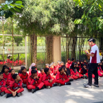 Selanjutnya masuk pada tahap Mengaplikasi, di mana anak-anak diajak terlibat dalam aktivitas praktik sederhana. Mereka praktik langsung menanam bibit kakao mulai dari mengisi tanah di dalam polybag yang sudah dibagikan hingga menanam biji kakao kedalam polybag. Selain itu, anak-anak juga berkesempatan untuk membuka dan mencicipi buah kakao yang segar. Setelah kegiatan dari area Tani Modern, mereka melihat secara langsung tempat produksi, mengamati mesin besar yang bekerja, serta menyaksikan bagaimana bahan-bahan diolah menjadi produk cokelat. Beberapa anak juga mencoba mengenali aroma dan tekstur bahan olahan, sehingga pengalaman belajar terasa lebih nyata dan menyenangkan. Anak-anak juga praktik menghias cokelat yang sudah disedikan dengan menggukan berbagai topping warna.