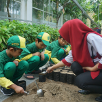 Diawali dengan kunjungan ke rumah pembibitan di area Tani Modern, para siswa mendapat pembelajaran langsung mengenai teknik menanam biji kakao serta media tanam yang tepat.