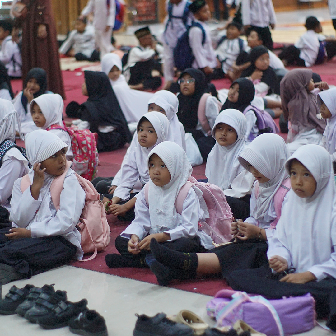 Materi pertama adalah Dirasah Islamiyah, yang berisi penguatan dasar tentang aqidah, ibadah, dan akhlak. Pemateri menjelaskan dengan bahasa sederhana bahwa sebagai muslim, anak-anak harus rajin berdoa, hormat kepada orang tua dan guru, serta gemar berbuat baik kepada teman. Penyampaian dilakukan melalui cerita islami dan tanya jawab agar mudah dipahami.