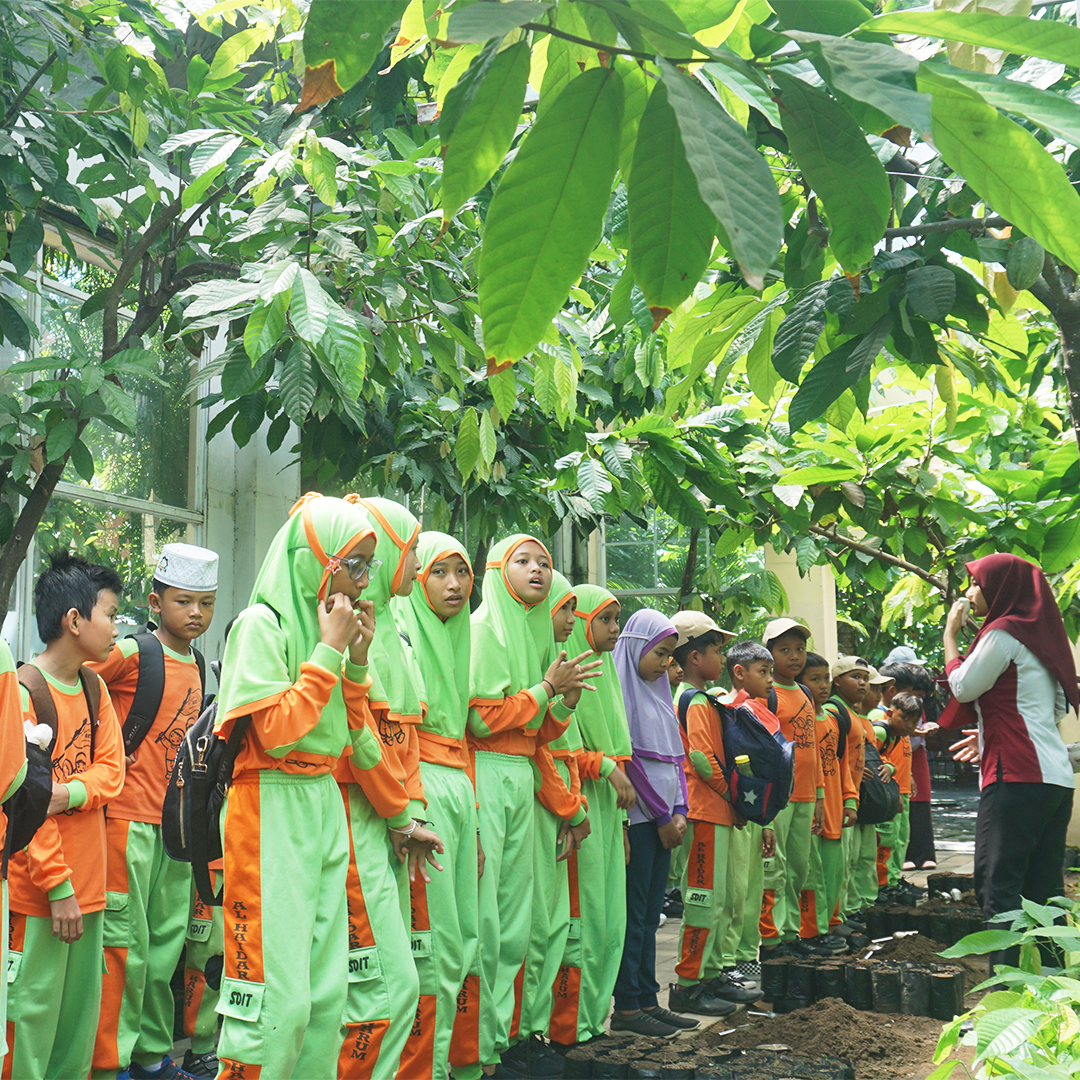 Setibanya di lokasi, peserta melakukan Check-In di Pintu 1 sebelum memulai rangkaian acara. Mereka kemudian mengikuti edukasi singkat di Tani Modern, tempat anak-anak diperkenalkan pada tanaman kakao serta proses perawatannya. Meskipun tanpa praktik menanam, sesi ini memberikan wawasan baru mengenai tanaman yang menjadi bahan dasar cokelat yang sering mereka nikmati.