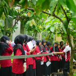 Setibanya di lokasi, para peserta melakukan Check-In di Pintu 1 sebelum memulai perjalanan edukatif menuju Tani Modern. Di area ini, siswa mendapatkan penjelasan singkat mengenai tanaman kakao serta proses budidayanya. Meski tanpa praktik menanam, kegiatan ini memberi pemahaman baru tentang pentingnya menjaga alam dan mengenal lebih dekat tanaman yang menjadi ikon Kampung Coklat.