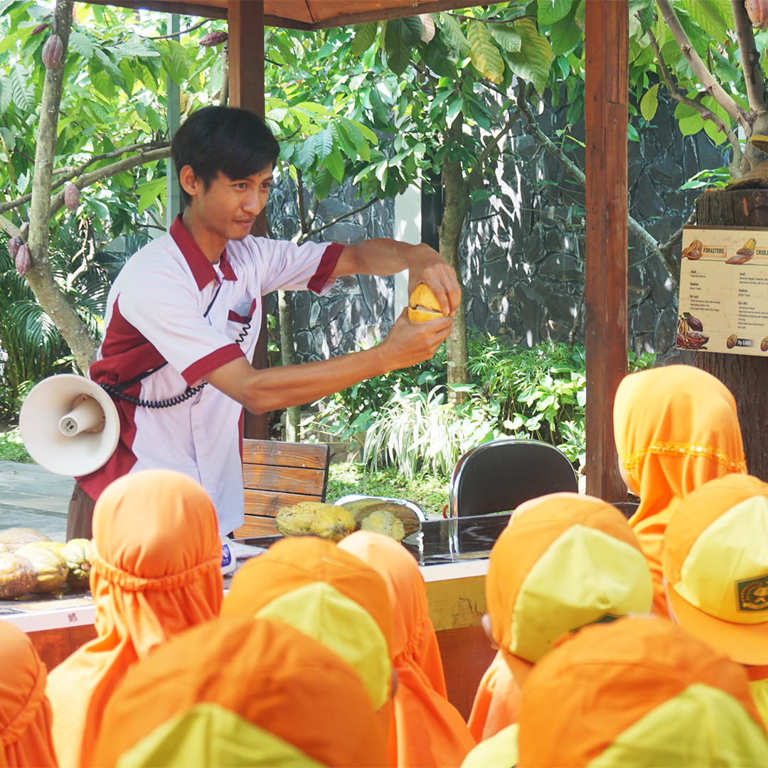 Keunggulan berlibur ke Kampung Coklat adalah adanya Paket Edukasi yang selaras dengan kebijakan kurikulum pendidikan nasional. Dikemas dengan pola pembelajaran mendalam melalui tiga pilar pengalaman belajar, yaitu Memahami, Mengaplikasi, dan Merefleksi. Melalui Paket Edukasi ini, Anda dapat belajar tentang tumbuhan kakao serta pengolahan cokelat dari hulu hingga hilir. Selain itu, Tidak hanya sekadar tahu, tapi juga bisa mempraktikkan dan mengevaluasi pengalaman belajar secara nyata.